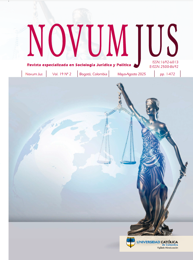Novum Jus es una revista cuatrimestral editada por el Centro de Investigaciones Sociojurídicas de la Facultad de Derecho de la Universidad Católica de Colombia, que presenta a la comunidad científica, académica y a la sociedad en general, resultados de investigación y estudios jurídicos y sociojurídicos originales. Está dirigida a los profesionales del Derecho, de la Ciencia Política y de disciplinas afines, estudiantes e instituciones de orden nacional e internacional.